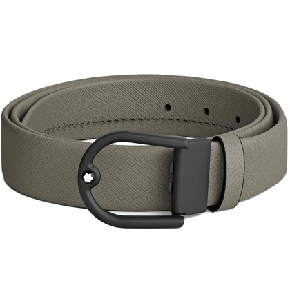 Кожаный ремень 35 мм из кожи серого цвета, пряжка в форме подковы от магазина премиальных ручек Premium Pens в Черкесске.